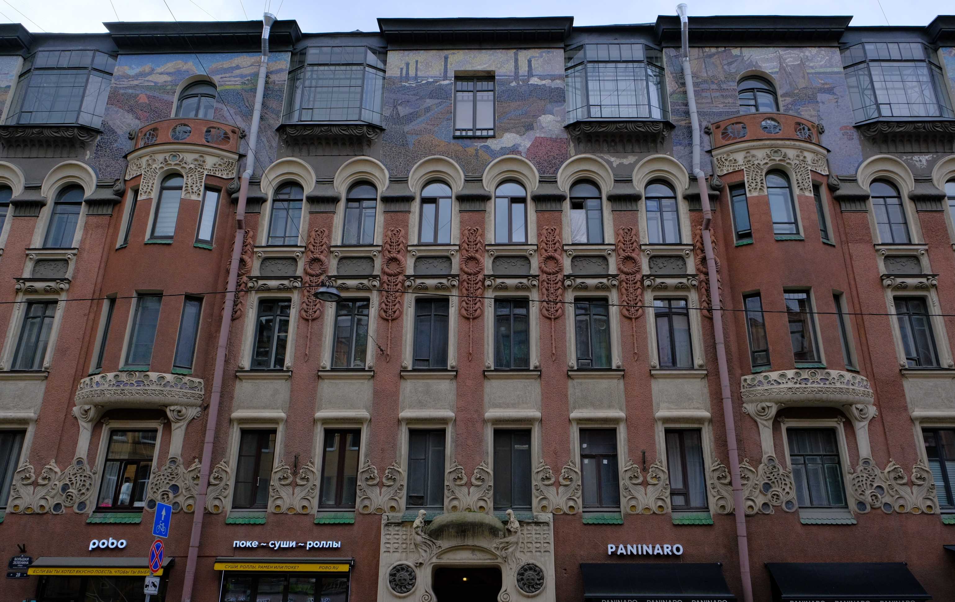 - доходный дом Лейхтенбергского с мозаиками и морской пеной на фасаде